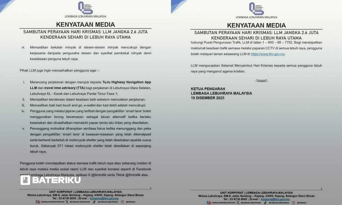 The government advises road users to plan their journeys carefully. Applications such as TuJu by the Malaysian Highway Authority and MyPLUS by PLUS are useful tools to check traffic conditions on major highways in Malaysia.